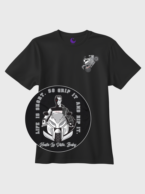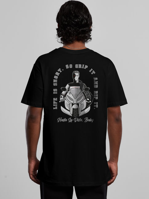 “Life is short. So grip it and rip it.” Cybernetic vibes on two wheels.
